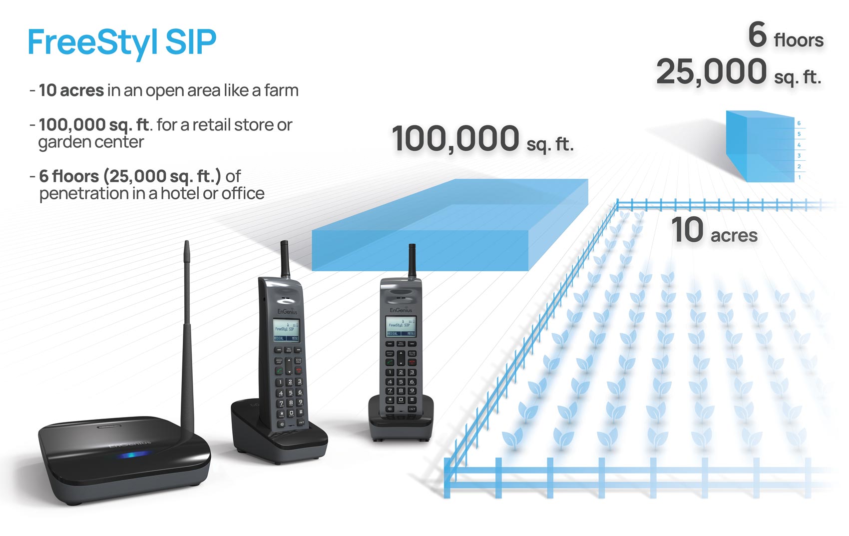 Here’s another scenario. Your customers might really want the popular cordless SIP DECT system because it’s affordable. However, like Wi-Fi SIP phones, the DECT system has high frequency and low power resulting in lower coverage than the FreeStyl SIP 900 MHz systems.