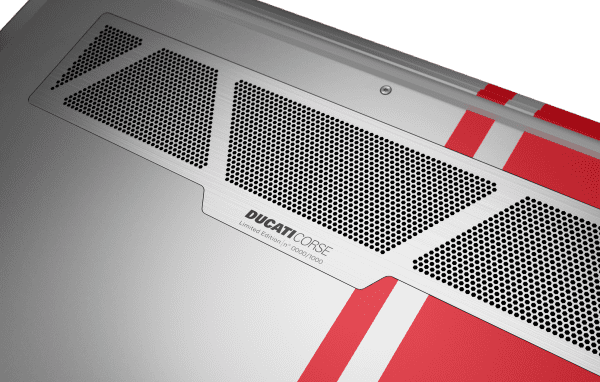 Typeface used to stamp individual serial numbers on the bottom laptop covers and on the commemorative cards is the same one Ducati uses to mark its collector edition bike parts. Something fans can look forward to is the BIOS chime that sounds like the buzz of MotoGP riders racing around the circuit with the Ducati logo front and center on the bootup screen.