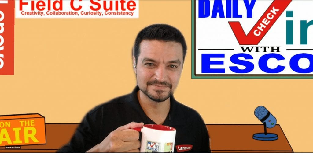 But before he meets with customers to discuss future trends and transformation, Esco kicks off each day by breaking down the hot topics and current events at Lenovo to his colleagues every morning on his daily talk show.