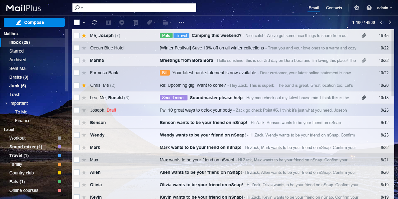 Employees used to work on Outlook and Gmail to deal with their emails. You will eventually face storage issues, but our situation changed when we started using MailPlus suite. It has facilitated server management and the end user experience for email operations. MailPlus Server provides many security features to protect our employees from malicious emails and attacks. The web and mobile client combines the advantages of Outlook and Gmail, so it would be easier for our employees to adapt to the new interface.