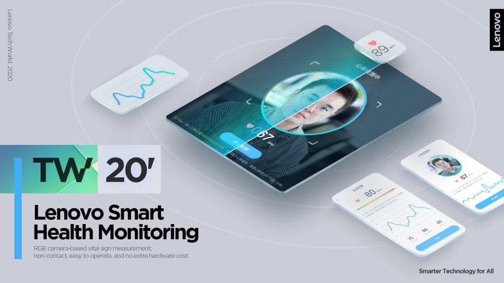 The Lenovo Smart Health Monitoring System prototype uses AI technology to detect human vital signs, such as heart rate, from videos taken of human faces generated on their smart devices, which could play a role in helping improve personal health monitoring during COVID-19. Signals containing the pulse information are extracted from the color image sequence of a face captured by an ordinary RGB camera. Then the AI performs a signal analysis and calculates heart rate value.