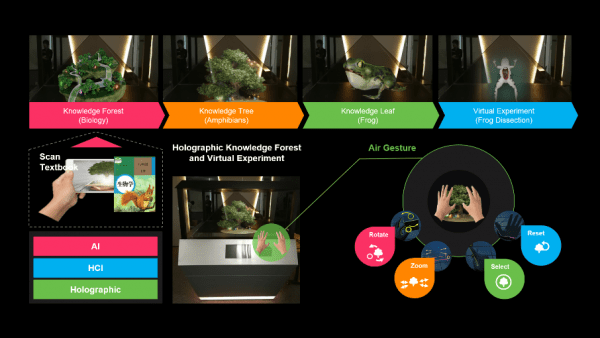 Immersive Learning applies interactive holographic technology to a “Knowledge Forest”, which presents the knowledge architecture in the form of a “forest” in a holographic, 3D way. It also enables users to explore the “forest” in a natural, interactive way. In addition, services like knowledge path navigation and virtual experimenting provided by the system can trigger students’ desire for knowledge and motivate them to learn.