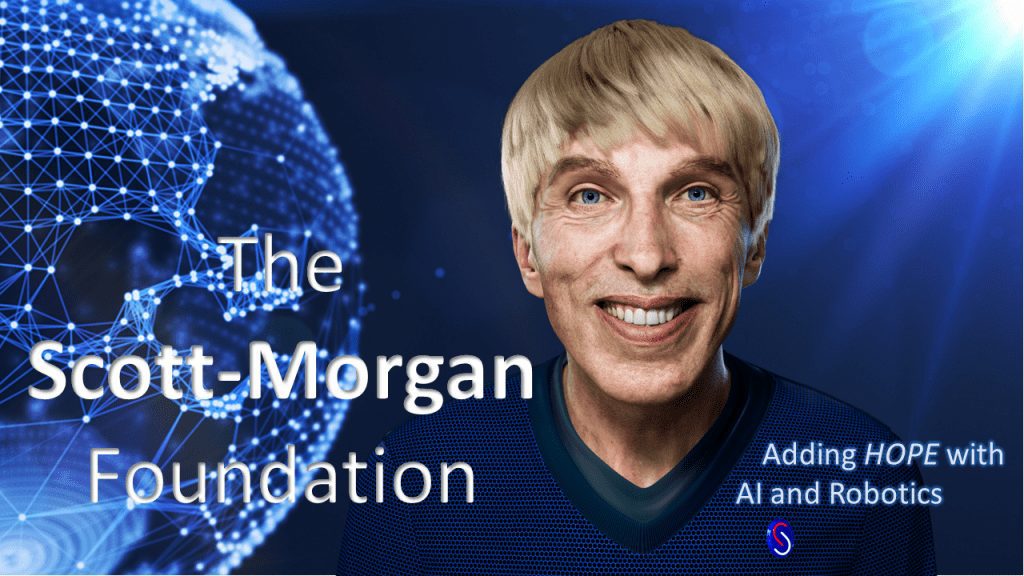 “The bedrock of our collaboration is a belief in the untapped potential of technology to unleash your dreams – whatever you are, whatever your background, whatever your circumstances, whatever your ambitions,” Scott-Morgan said. Initially told by doctors he had only two years to live, Scott-Morgan has a mantra: ‘Add hope with AI and Robotics!’”