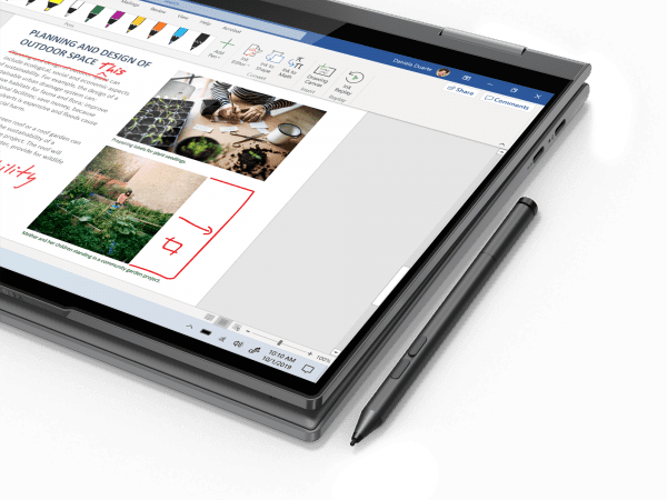 Powerful Qualcomm Adreno® 680 graphics and user-facing stereo speakers powered by Dolby Atmos® complete your entertainment experience. Offering twice the performance of the previous generation compute platform, the Snapdragon 8cx 5G Compute Platform lets you create, edit and multitask on the Yoga 5G at a fraction of the power consumption. Paired with a digital pen and Windows 10, the Yoga 5G is designed to supercharge your productivity. Additionally, the Yoga 5G’s software-enabled intelligent temperature control feature adjusts performance depending on your activities, keeping your laptop cool and eliminating the need for a noisy fan.