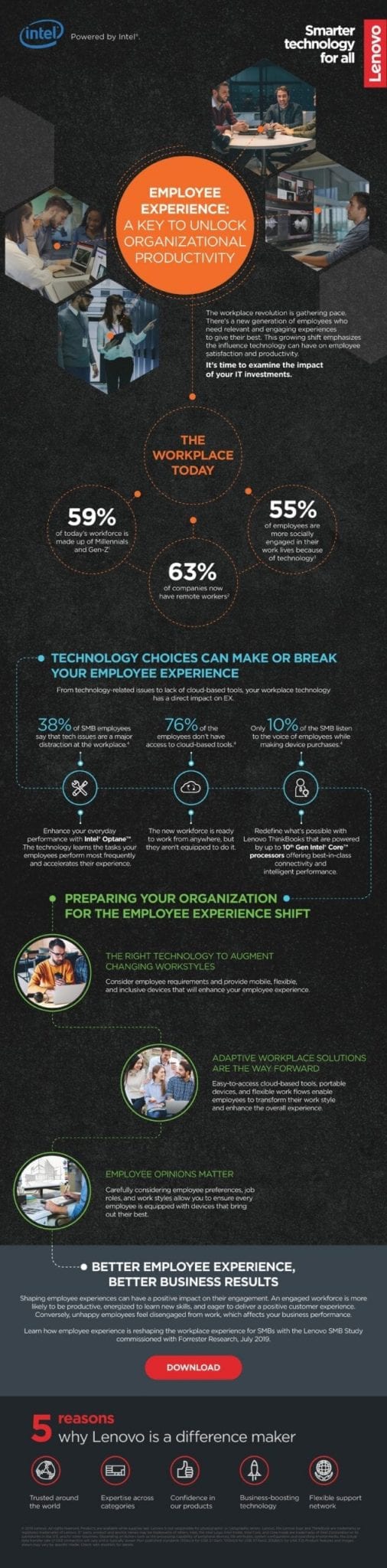 In a recent ‘This is Life’ global study conducted by Lenovo, it found that over half (58 percent) of people believe technology is creating a more diverse work environment, with a further 58 percent believing that tech is helping them get better jobs, enhance careers and be more productive at work by completing tasks faster and more efficiently. All these findings highlight the benefits of wider adoption of smarter technology in the workplace to significantly improve EX.