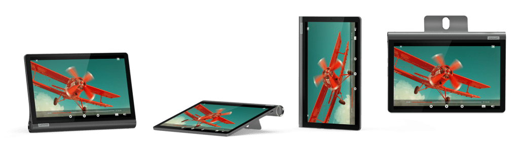 As the successor to the Yoga Tab 3 series, the Yoga Smart Tab pairs smart home hub optimization1 with the features that made the Yoga Tab a favorite entertainment tablet. It combines top-of-the-line audio and video capabilities with a signature multi-modal Yoga kickstand that allows you to tilt, stand, hold or hang their tablets. That means you can stand, sit, recline or lie down while using the Yoga Smart Tab, and still get a full experience at virtually any angle.