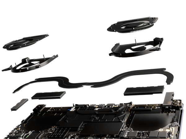 Less bulk at 17.9mm slim (.71 inches) and weighing just 1.86 kg (3.96 lbs) means more mobility aided by a 71WHr battery for up to 7.75 hours of battery life22 and Rapid Charge Pro.23 To create thinner, lighter and more powerful gaming laptop designs every year, we continually optimize thermal performance via the smarter airflow solutions of Lenovo Legion Coldfront 2.0. With new machine-drilled holes applied above the keyboard, our redesigned air intake system is 31 percent larger on the Lenovo Legion Slim 7i to better manage any heat dissipated during heavy gameplay with up to 115 percent more airflow going to the CPU and GPU than in previous generations. Combined with an increased number of exhaust fan blades so it can grab and push more cool air, and a smarter 5-point sensor array that monitors the system to stay two steps ahead of any increased power demands, your cooling fans won’t get too loud to drown out the incredibly immersive sound of Dolby Atmos Speaker System with Sound Radar by Dolby, all set inside your laptop’s well-designed acoustics chamber to reduce rattling.
