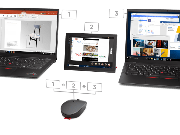 - Input: Mice and keyboards in the Lenovo Go family will feature a number of innovations to suit dynamic work environments, allowing users to quickly shift between working modes and locations. Light and compact forms with ergonomic designs, wireless connection and charging capabilities are essential for a productive workspace. With more devices coming soon, today Lenovo is introducing the Lenovo Go Wireless Multi-Device Mouse. With many remote workers having more than one device and enjoying the flexibility they give; the multi-device mouse allows pairing of up to three devices with easy cycling between them at the touch of a button. What’s more, the utility button can be programmed for rapid meeting shortcuts, and not only is the mouse wirelessly connected, it can also be wirelessly charged through a compatible Qi charging solution or via USB-Type C.