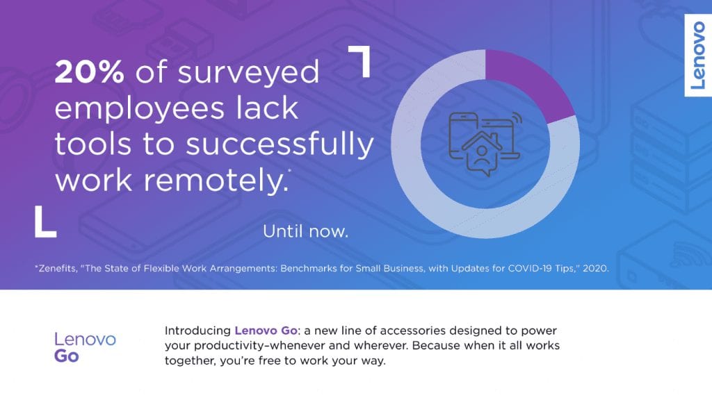 “Research shows that 20 percent of small business employees surveyed lack the tech tools to successfully work remotely.2 We know from further insights that having the right technology is critical to improving knowledge workers’ productivity and collaboration with data security and privacy, especially in today’s remote and hybrid work environment,” said Eric Yu, senior vice president of Lenovo’s global SMB, Visuals and Accessories, Intelligent Devices Group. “These user insights are what inspired our vision for the new Lenovo Go line of accessories – to empower the employee experience through smarter accessories that enable people to thrive in a work-from-anywhere world.”