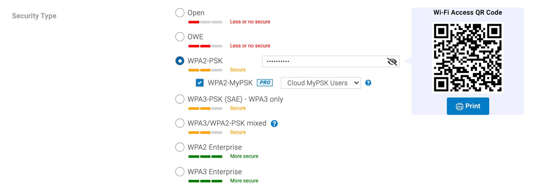 EnGenius Technologies provides a service called MyPSK, which automatically assigns a personalized password to each client on a network. Everyone gets a unique password for their own personal use. With MyPSK, you can create up to 500 unique passwords for each network (SSID). If you have more than 500 users, you can create another SSID to handle the next set of users up to 1,000, and so on.