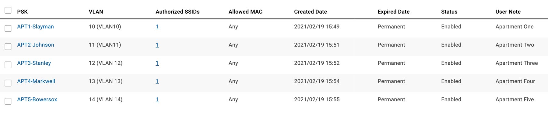 MyPSK allows you to create up to 500 pre-shared keys (PSKs) for groups of users who you can then assign to any one of several VLANs (virtual networks), which will further allow them access to a specific set of resources like printers, databases, and collaboration groups.