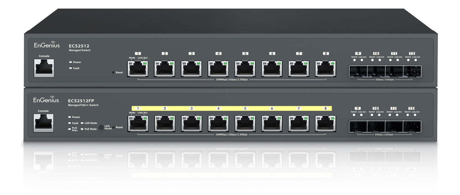 EnGenius has released a new series multi-gigabit PoE++ L2+ networking switches with multiple NBASE-T ports. The EnGenius ECS2512FP and ECS2512 switches are designed for enterprise-class environments. Along with fast multi-gig switching capabilities, the ECS2512FP also provides PoE++ that delivers power to remote, high-performance devices like Wi-Fi 6 access points.