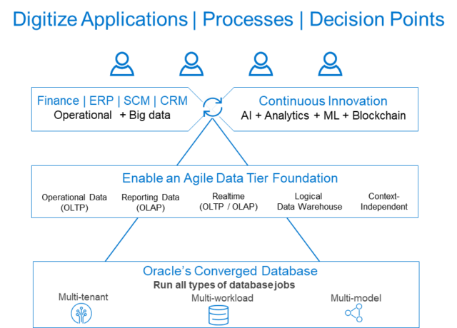 Underpinning this change are new database architectures and capabilities, such as Oracle’s converged database advancements that now replicate the functionality of multiple special-purpose databases, bringing together structured operational data with unstructured data, AI, ML and IoT. The result? Traditional ERP and finance applications work with emerging applications in a data-driven business, making it possible to: