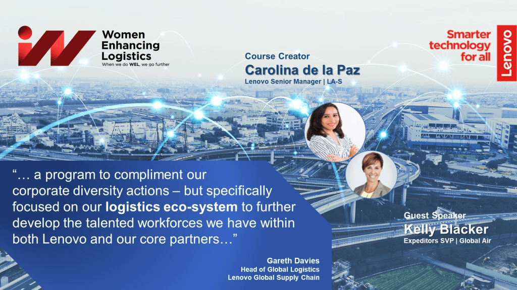 Carolina’s mentor, Horacio Chavez, Director of Strategy and Network, who says, “Congrats to Carolina de la Paz for creating and launching ‘Women Enhancing Logistics,” a great program with inspiring speakers sharing successes and challenges in the logistics and supply chain industry. ‘WEL’ done!”