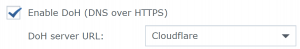 Native DoH support on the router means that all DNS queries made by your devices are automatically encrypted with HTTPS as soon as they travel beyond your router. Simply select your preferred DoH server in SRM (Google, Cloudflare, or enter the URL of any other DoH server). In about two or three clicks, you can lock your whole network away from prying eyes.