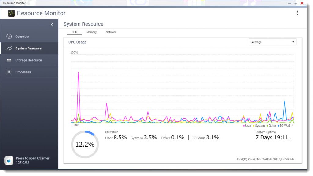 I did a quick test on my 3-year old TVS-471 (Intel Core i3-4150 Dual-Core 3.5GHz with an embedded Intel® HD Graphics 4400), comparing the CPU usage while transcoding a 1080P MKV movie to its original quality in real time with hardware acceleration enabled vs. hardware acceleration unenabled.  As you can see in the two screenshots, the avg. CPU usage with hardware acceleration enabled is under 10% most of time, and it’s obviously a bit higher without hardware acceleration. The difference will be more significant if there are multiple concurrent transcodes.
