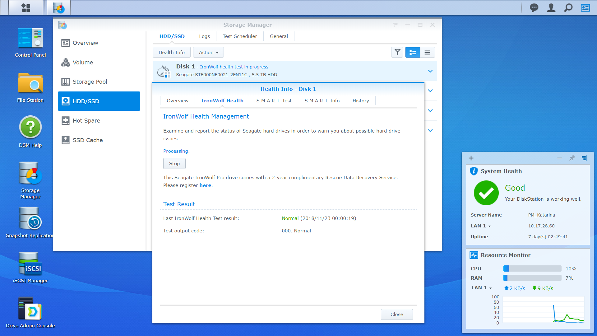 To prevent data loss, S.M.A.R.T (Self-Monitoring, Analysis and Reporting Technology) is usually employed to analyze 20 parameters and will send out a warning upon detecting imminent drive failures. IronWolf Health Management (IHM) brings reliability to a higher level as it monitors hundreds of parameters with adaptive algorithms to keep close tabs on drive health status, ensuring a robust system environment.