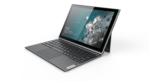 Available in a cool Graphite Grey hue, count on the smarter features of the IdeaPad Duet 3i to make hands-free communication easier with Cortana digital assistant plus dual 360-degree mics while the clever privacy shutter on the webcam helps to keep you safer from unwanted onlookers. A smart buy for those on the go, the IdeaPad Duet 3i has two USB-C ports for increased data-transfer speeds 15, solid memory (up to 8GB), storage (up to 128G eMMC) and up to seven hours of battery life.16