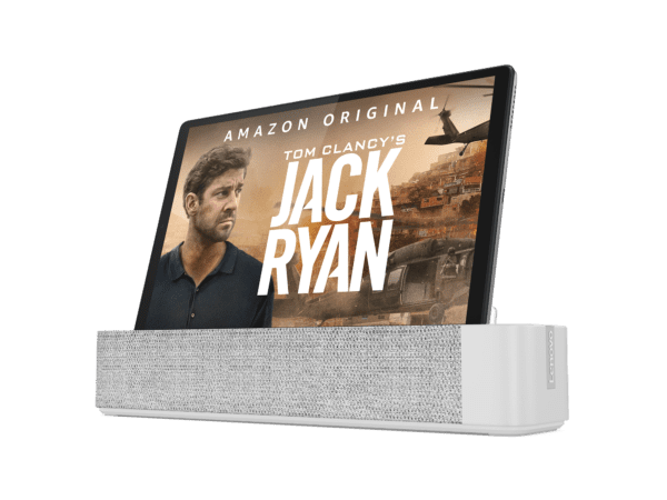 Or go hands-free and see what’s new on Prime Video™. The modern fabric covering on the Lenovo Smart Dock in new Graphite Grey hue is designed to look great even while charging on pogo pin connectors. You can also ask Alexa to tell you the latest news updates, show your calendar, search for recipes, control your home’s smart devices19 and listen to your favorite tunes with Amazon Music™ and watch as the lyrics flash across the screen—all with just your voice from across the room, thanks to three far-field mics.20